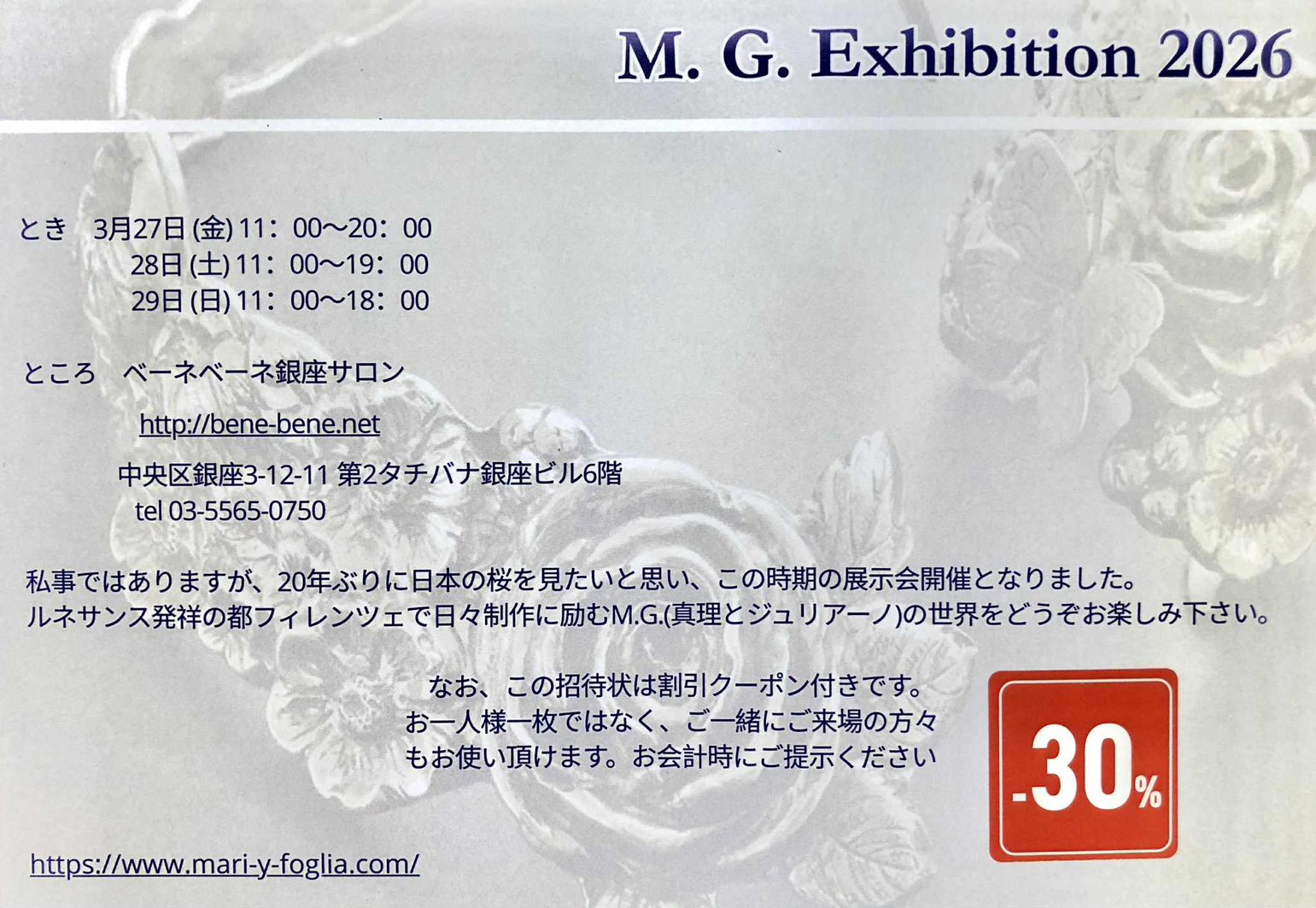 フィレンチェ⇔銀座を繋げる特別イベント【M.G.Exhibition 2026】3月27日(金)~29日(日)