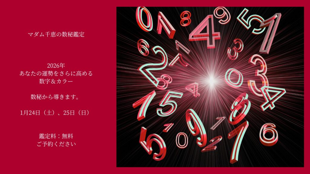 マダム千恵の数秘鑑定 2026年 あなたの運勢をさらに高める 数字&カラー 数秘から導きます。