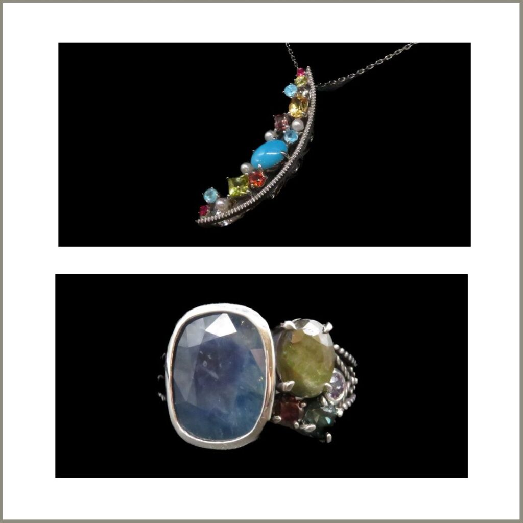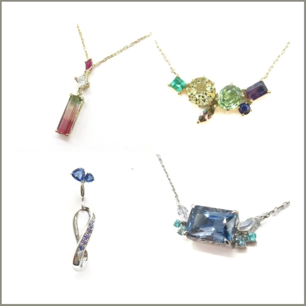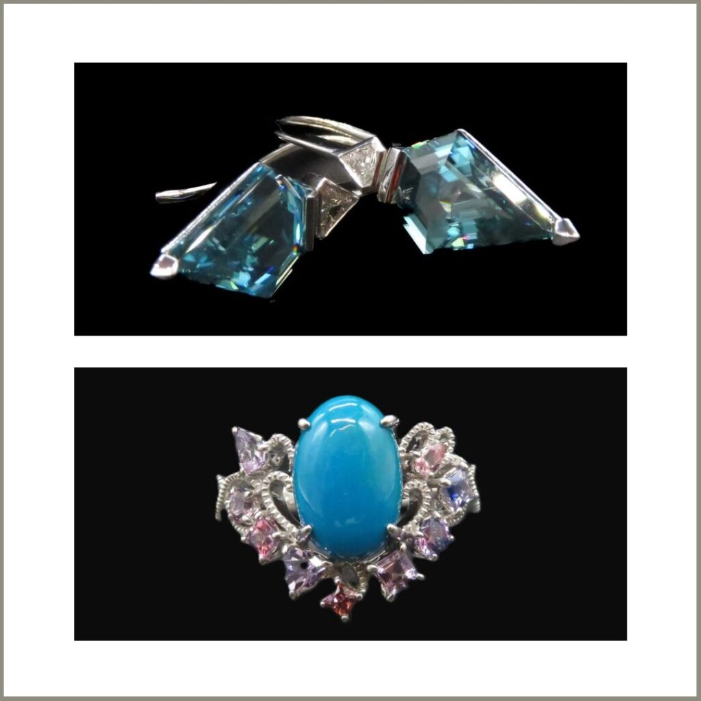 ターコイズ、バイカラーサファイア、サファイア、カナリートルマリン、パライバトルマリン、スピネル、湖水真珠