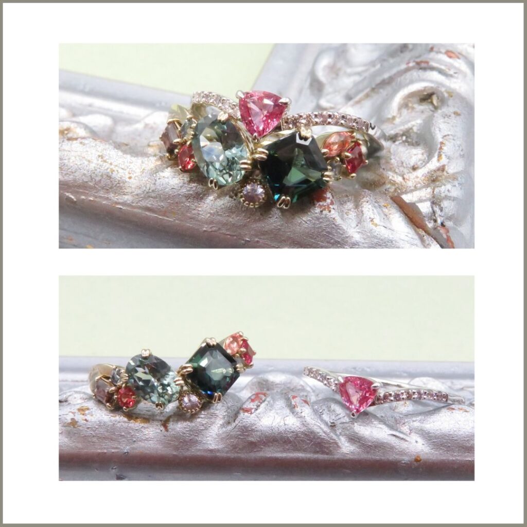 下段右:Pt900/K18グリーンゴールドリング T.S様所蔵