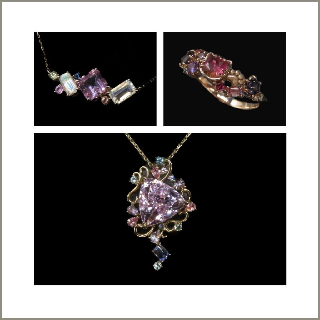 カラーチェンジサファイア、バイカラーサファイア、サファイア、ベニトアイト、ピンクスピネル、ラベンダースピネル、ピンクダイヤモンド、ダイヤモンド