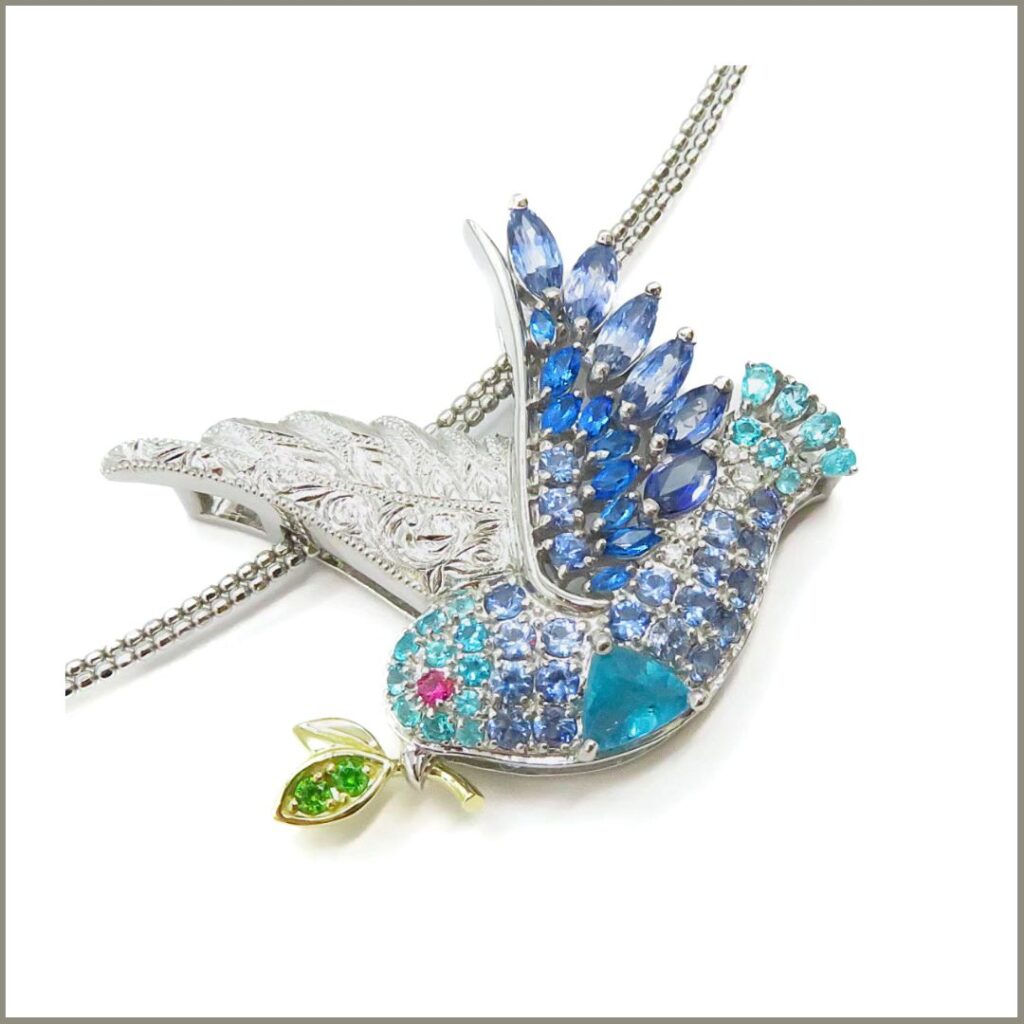 パライバトルマリン、ベニトアイト、レッドスピネル、デマントイドガーネット、バイカラーサファイア、アウイナイト、ダイヤモンド