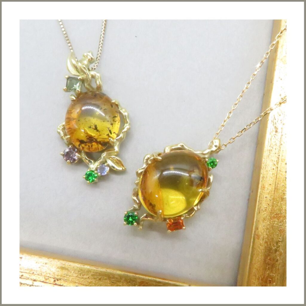 琥珀、スぺサタイトガーネット、デマントイドガーネット