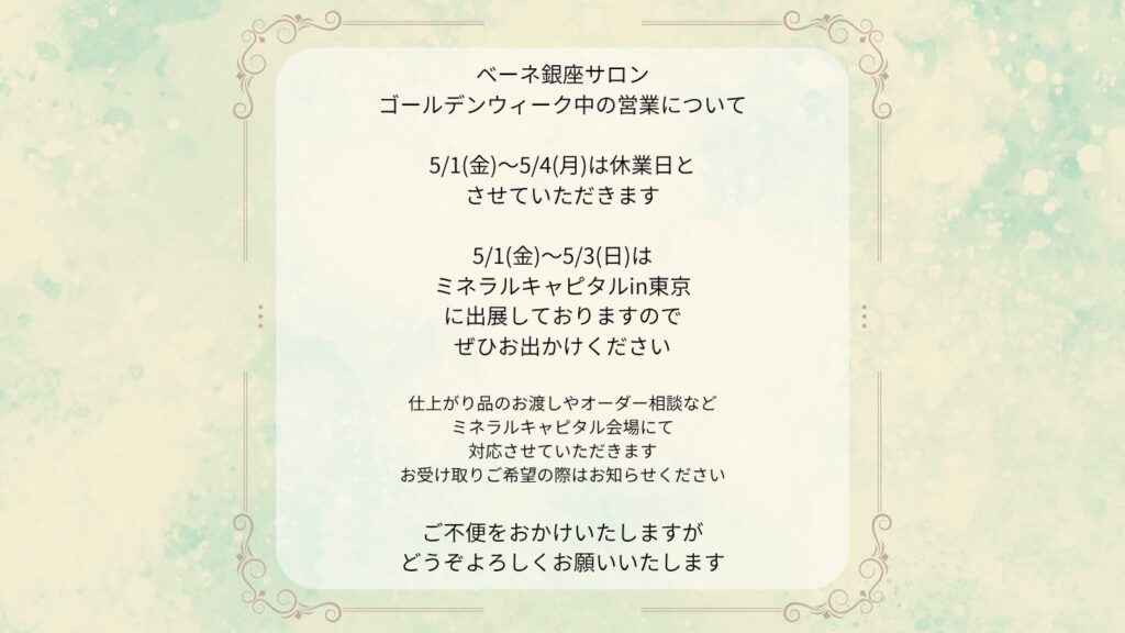 いつもベーネ銀座サロンをご愛顧いただきありがとうございます。